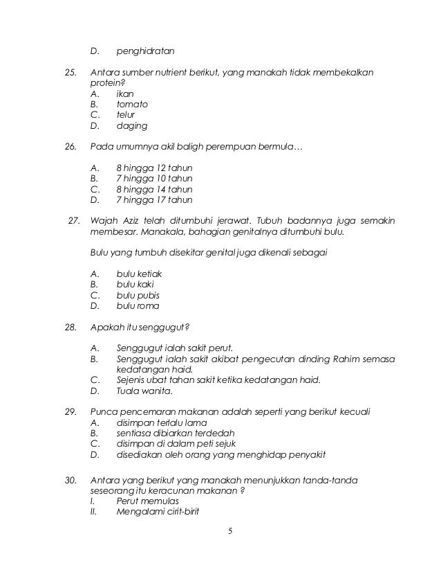 Soalan Peperiksaan Awal Tahun Pendidikan Kesihatan Tahun 4 Baik Soalan Ujian Pk Tahun 5 Skoloh